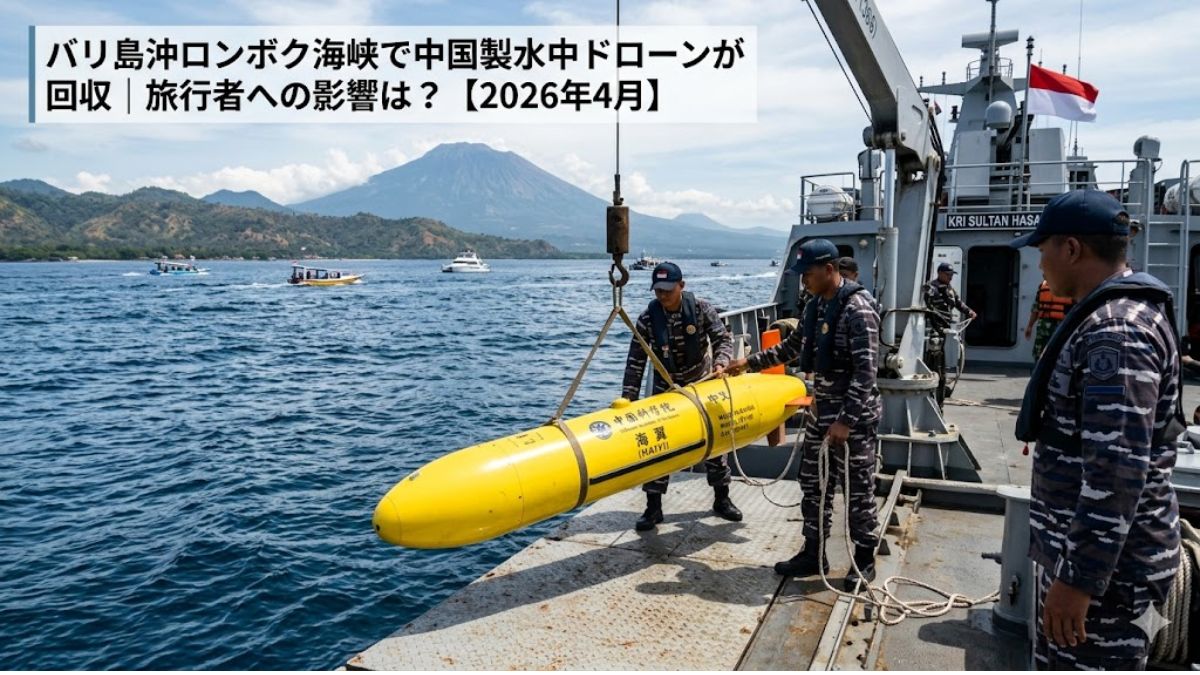 2026年4月6日、バリ島の東に隣接するロンボク海峡で、中国製とみられる水中ドローン(無人水中航行体)が地元漁師によって発見・回収されました。バリ島を訪れる旅行者への直接的な影響はありませんが、地政学的な背景を知っておくことは旅の参考になります。