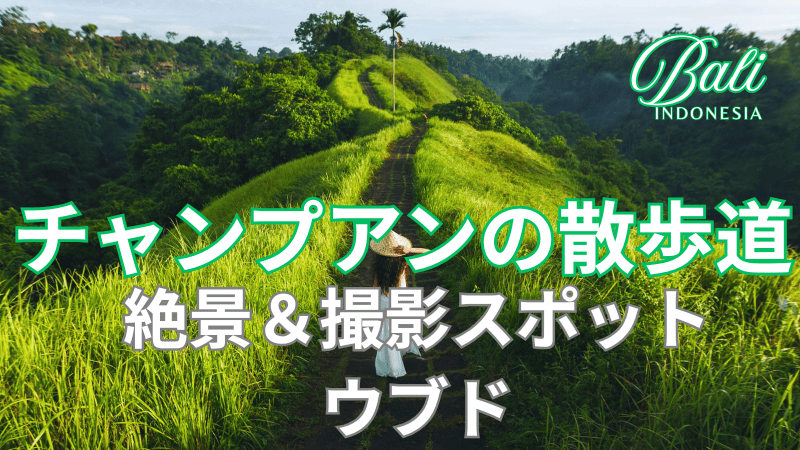 チャンプアンの散歩道は、ウブド滞在中に気軽に自然と写真を楽しめるスポット。渓谷や田んぼ、ヤシの木に囲まれた風景は、まさにバリ島らしい癒しの時間を提供してくれます。朝の散歩や撮影を楽しみながら、ぜひ訪れてみてください。