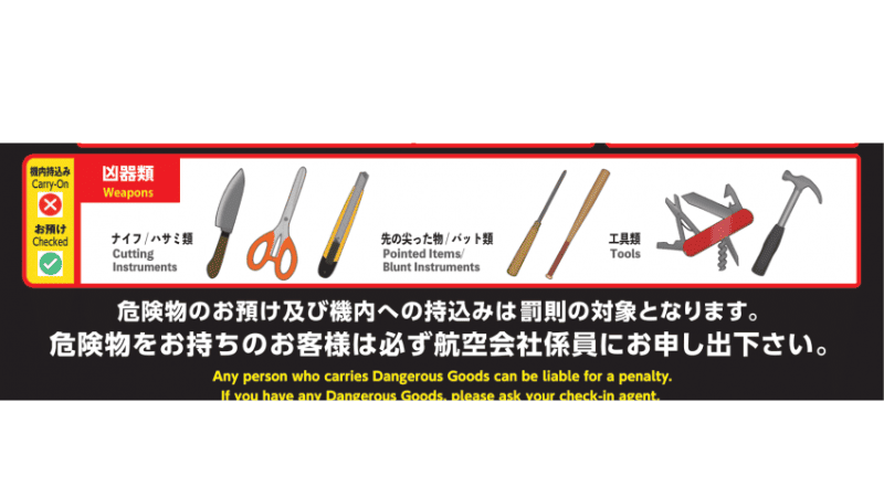 - ナイフ/ハサミ類/先のとがったもの/バット類/工具類