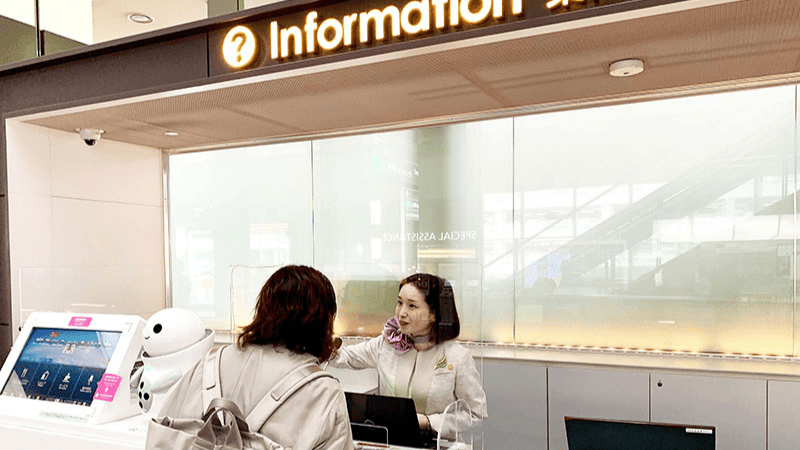 ターミナル内のあちこちに「案内カウンター」があって、迷ったらすぐ助けてもらえます。