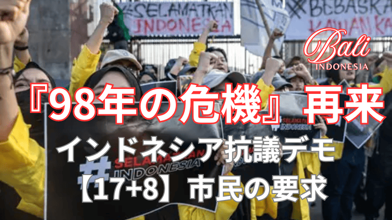 今回のインドネシアの抗議運動で注目されているのが、「17+8 Tuntutan Rakyat(人民の17項目即時要求+8項目長期改革)」という市民側の要求リストです(ウィキペディア)。