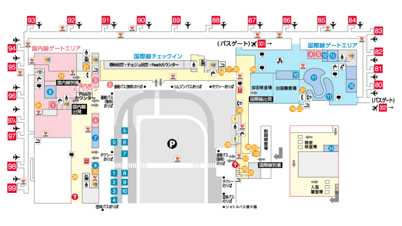 - 第2ターミナル:ピーチやジェットスターなどのLCC(格安航空会社)が利用