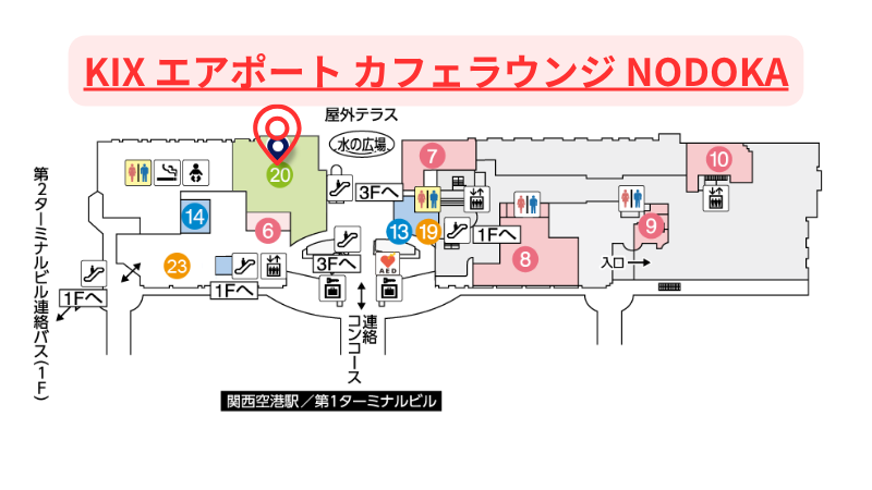 KIX エアポート カフェラウンジ NODOKAエアロプラザ2階24時間ソフトドリンク無料、アルコール有料、軽食有料、Wi-Fi、シャワーあり○(2時間無料)