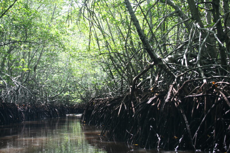 午前中はマングローブ村へバイクを飛ばし、カヌーで探索。