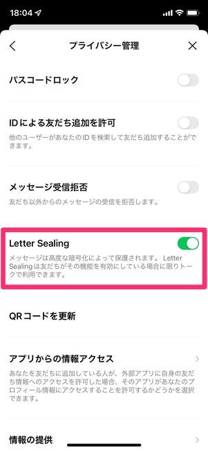 レターシーリングONメッセージ盗み見設定 → プライバシー管理 → レターシーリングON設定 → プライバシー管理 → レターシーリングON