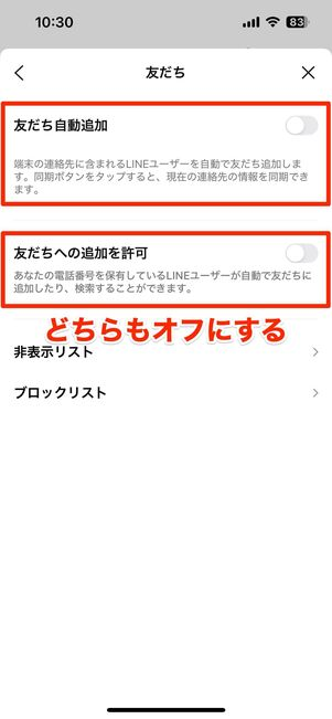 連絡先から自動で友達追加されるのを防ぐ