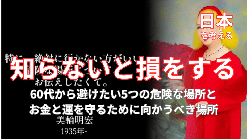 【美輪明宏】知らないと損をする…60代から避けたい5つの危険な場所と、お金と運を守るために向かうべき場所