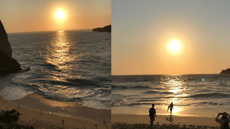 崖の上から見るだけじゃ物足りなくて、どうしてもビーチの砂を踏んで夕日を体感したくて、