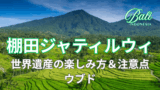 ウブド中心部から北東へ約30分、バリ島を代表する棚田風景が広がるエリアがテガラランです。段々畑が織りなす幾何学模様は、息をのむ美しさです。
