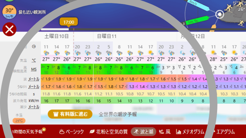 波・潮・風・天気をまとめてチェックできる優れモノ。