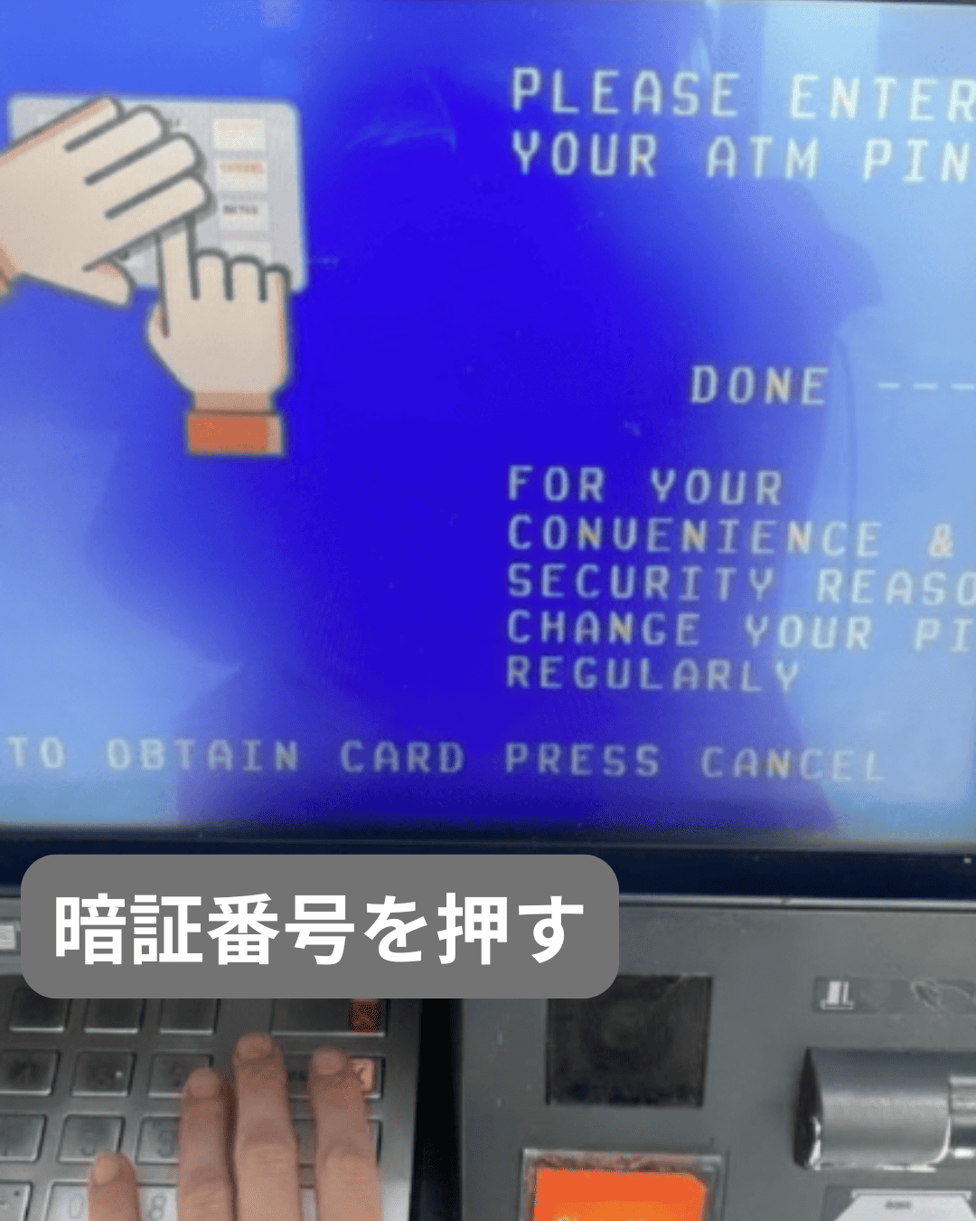 - ATMで手数料表示が出たら、内容を確認してからOKする
