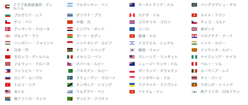 Wiseでは、40種類以上の通貨を保有・両替することができます。